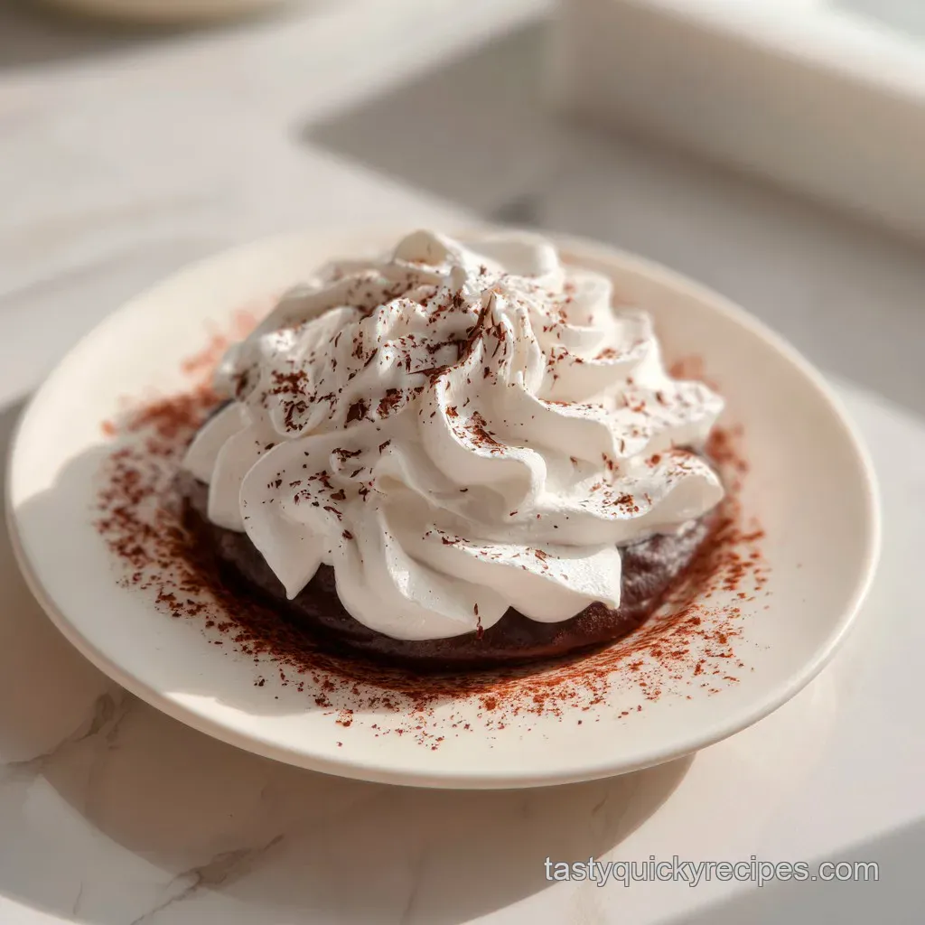 The visual appeal of a 2 Ingredient Chocolate Souffle with Whipped Cream is all about color balance and height. To make this look like a five star dessert, we focus on three specific color accents added just before serving.