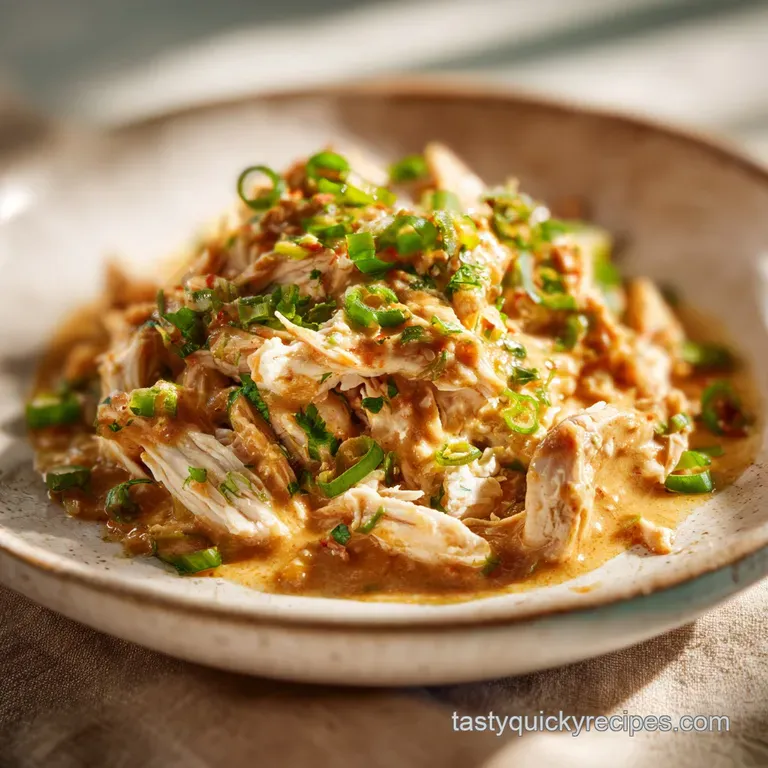 It creates a very tender, shredded version of Peanut Butter Chicken.