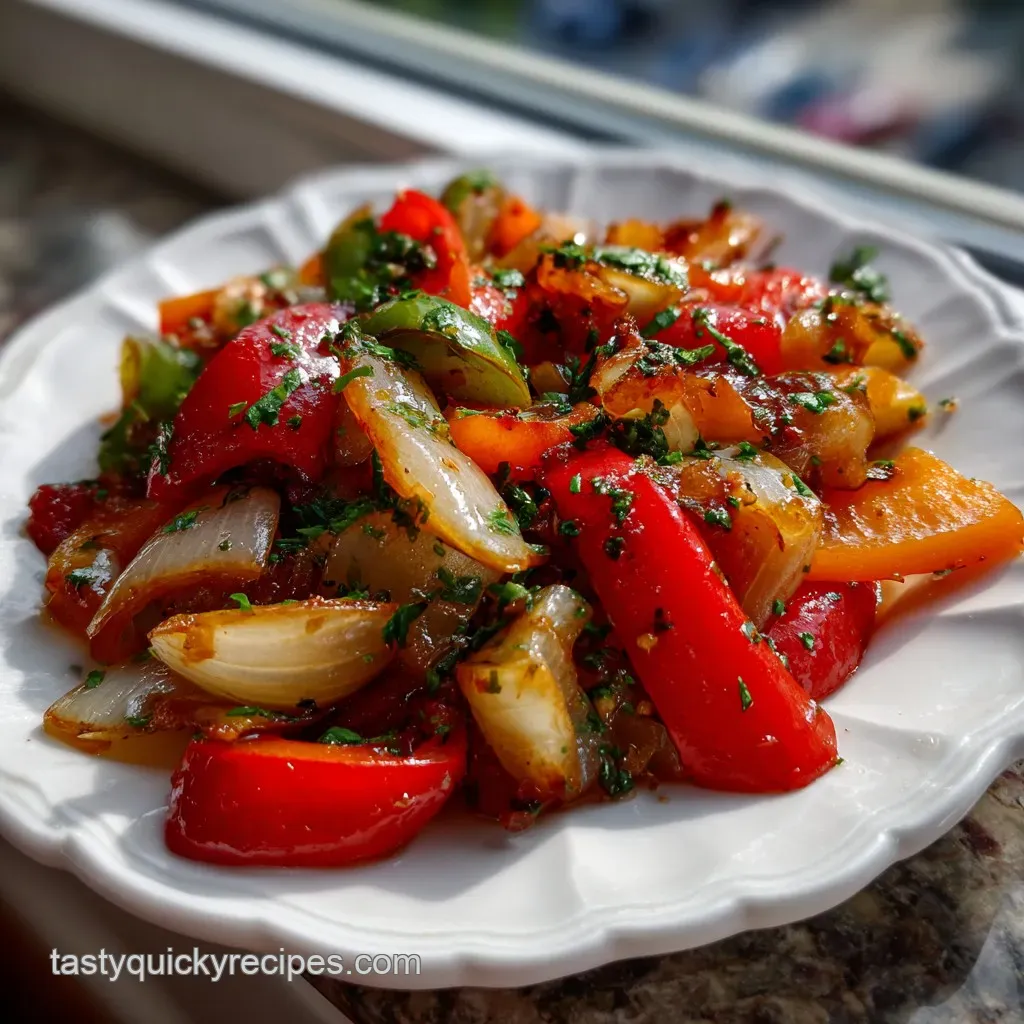 Serve these sweet peppers over toasted sourdough, tossed with al dente pasta, as a vibrant topping for grilled chicken, or even folded into a morning omelet for an instant Mediterranean style breakfast upgrade.